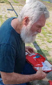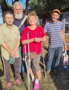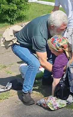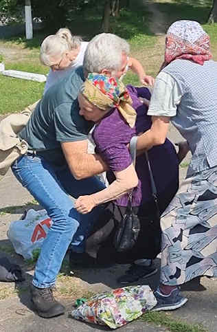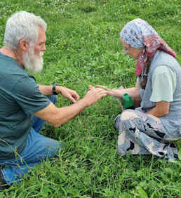Duncan writes that Mike has been a great, spiritually minded companion in the work, and that he has just the right skill set. Not only with his first aid and fireman skills but also giving advice and relevant encouragement to all those we met who have lost their homes and are now living pretty much off grid in previously abandoned or derelict homes and trying to survive on what they can grow. Mike and Betty also live relatively off grid in rural Queensland, and Mike was able to advise how to use various herbs and even weeds for medicinal purposes, what is best to feed goats and chickens with etc., showing folks how to identify wild jarrow and use it. He has a wealth of knowledge about these things that suddenly became relevant to former urban dwellers who are now having to get food from the land around them, and are often far from any medical attention- in a country whose medical service pretty much only offers emergency medicine to civilians, due to the war: