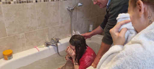 This week it was our pleasure after Sunday church to visit and baptize ELLEN at her flat in New Addington; a wonderful elderly lady and true sister in the Lord. She can't get out to church due to a stroke etc. but is with us online.