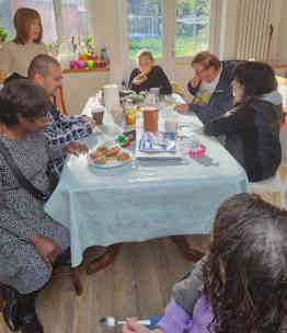 Sister Evia has now joined Horley ecclesia but continues active with us at Croydon Church in a Pub. She brought some lovely clothes donated by Horley ecclesia and we then distributed them at pub church, with eager reception as you can see in