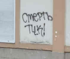 Then there are the military service issues. Brother N is in prison on a hard regime, poor food, little soap, and he has been allowed to have his own kettle and now an electric ring to cook any food we can give him. We provided these things and set up for them to be continue to be provided and can only ask for your prayers for all those in these situations. There is a real fear of the "TCK", the unit who go around arresting random men and demanding their ID documents to check against the data base of who has been called up but not showed up for army service. Here's some graffiti wishing "Death to the TCK":