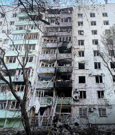 UKRAINE We made a brief but very intense visit to Ukraine, which, as mentioned in last week's message, is under the most intense bombardment since the war started. People in many cities have been sleeping in shelters or unable to sleep at night due to the swarms of drones attacking all Ukrainian cities every night. There has been a very sharp uptick in the attacks with much destruction. The stress level is heightened because the anti aircraft fire is going up from all around you, some of it just small arms fire from machine guns. You have the impression you are in the middle of a battlefield even though there are no enemy soldiers on the ground. And then there's the constant drama of falling debris from the missiles fired from both sides, along with the wailing of sirens all the time. And this has been going on night after night. So many traumatised people and kids who will develop PTSD. No Ukrainian city is free from this now not even in western Ukraine. We were in a particularly bad air raid this time, with men on the roof of the building next to the hotel firing all they had at the incoming drones. We recorded some of it at about 3 AM and sent it to our WhatsApp group [let us know if you'd like to join it] and there was instant prayer. After that a drone came heading right at us but shot down by the guys on the roof next door, although at low altitude- it exploded in mid air. All projectiles sound like they're going to land on you as they come down but this one would for sure have hit either the hotel or buildings next to it. So thank you for your prayers. But that night some missiles did hit with many killed and wounded in their beds. Here was the view in the morning of a block nearby: