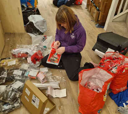 Preparations for the Xmas party are in full swing... so much interest in attending from amongst the large group of contacts we now have in South London. As ever the Gospel will be preached to all who come. Here's Cindy preparing the presents for everyone... and everyone will be a winner in the games planned: