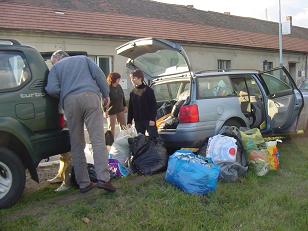 Delivering shoes to refugees in Bosnia